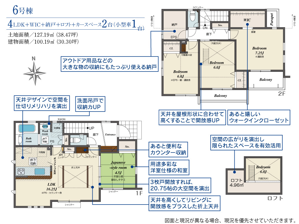 土地面積 127.19m² ・建物面積 100.19m² ・駐車場2台