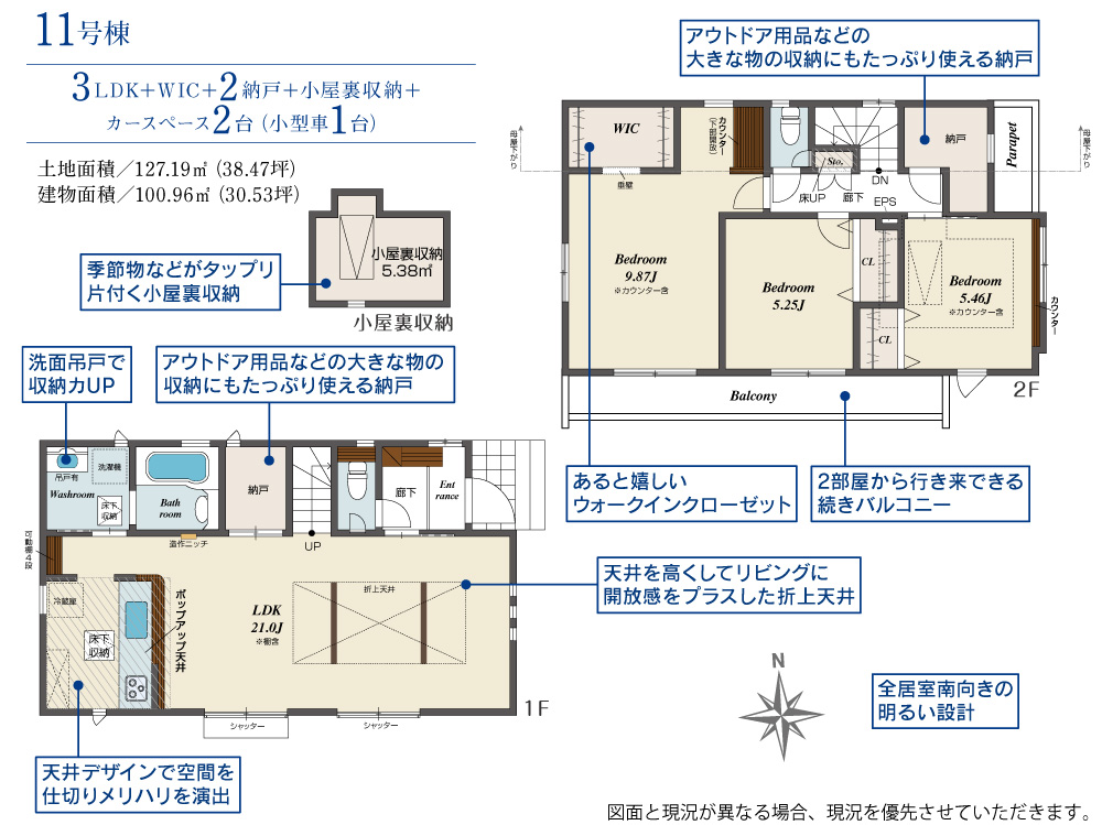 土地面積 127.19m² ・建物面積 100.96m² ・駐車場2台