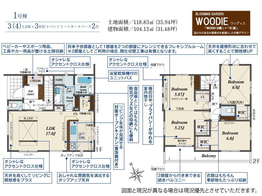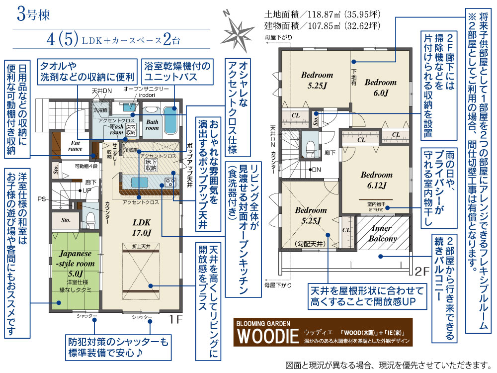 土地面積 118.69m²~118.94m² 建物面積 100.61m²~107.85m²