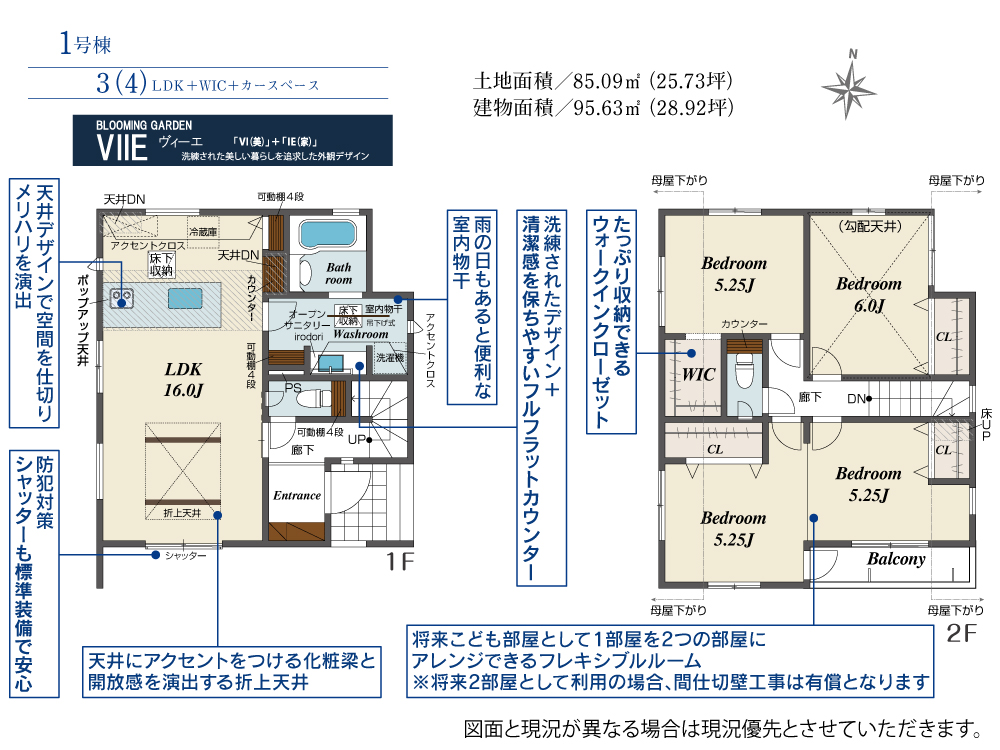 土地面積 85.09m² ・建物面積 95.63m² ・駐車場1台