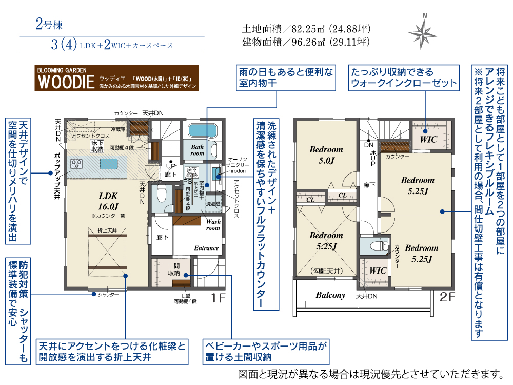 土地面積 82.25m² ・建物面積 96.26m² ・駐車場1台