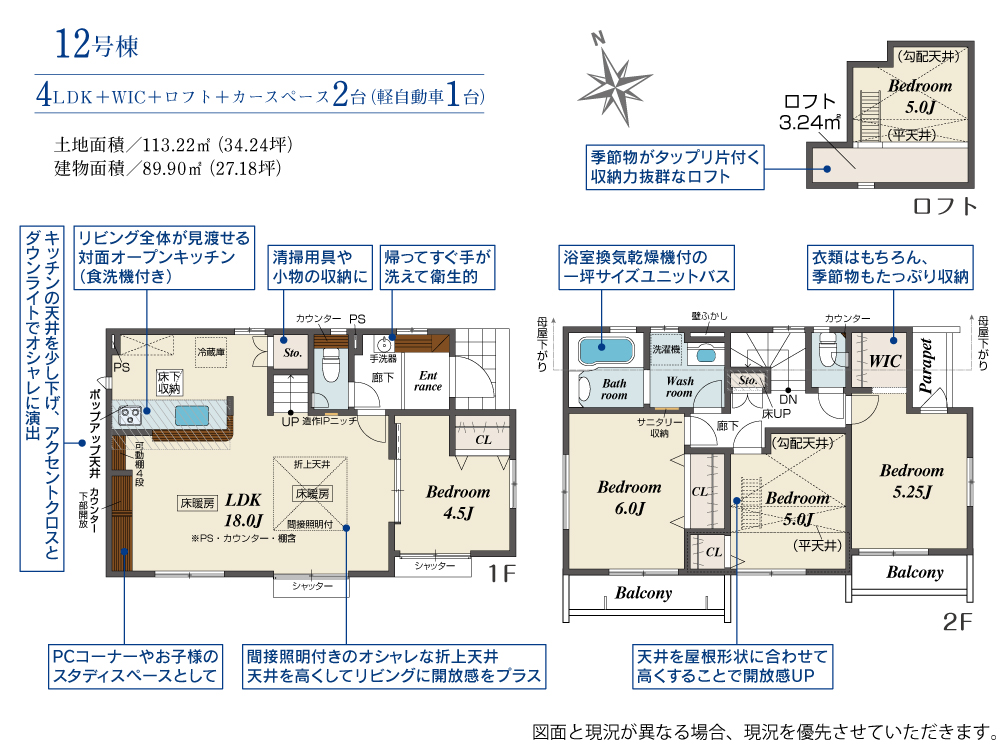 土地面積 113.22m² ・建物面積 89.90m² ・駐車場2台