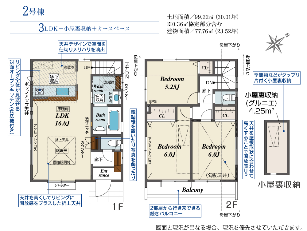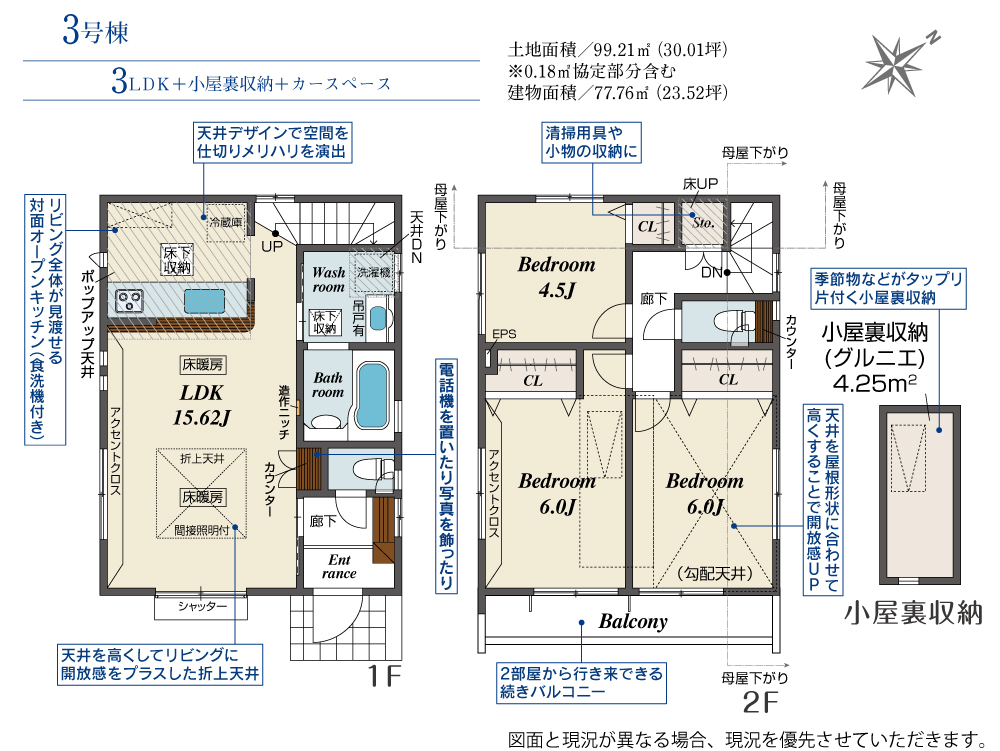 | 土地面積 | 99.21m²~99.22m² | 建物面積 | 77.76m²~78.96m² | |
