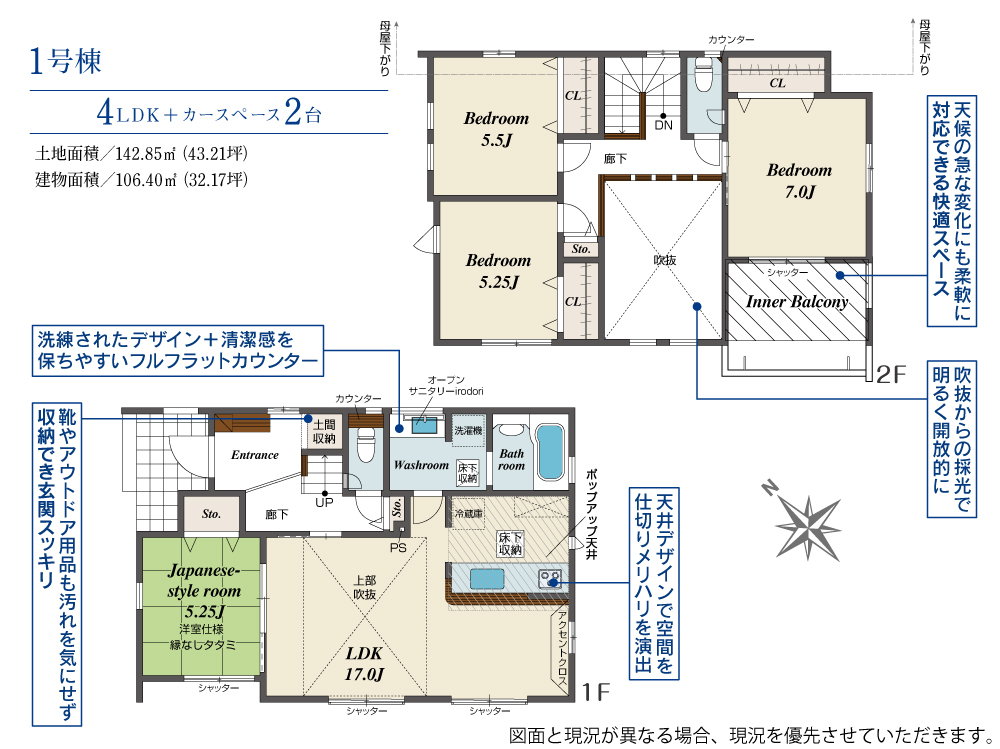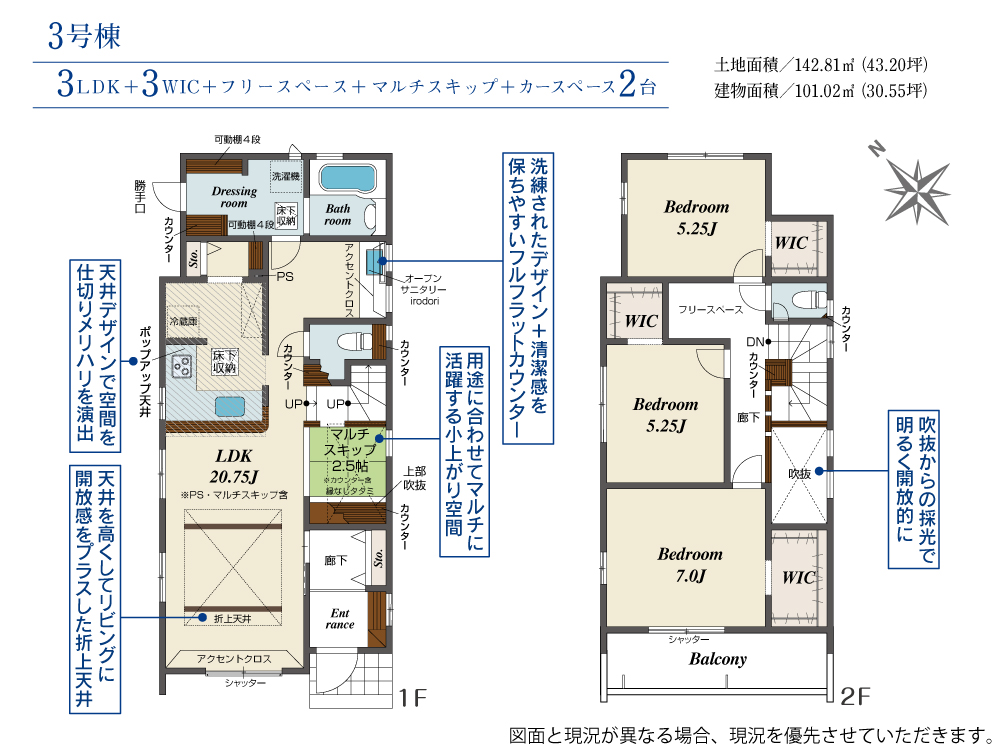 土地面積 142.81m²~142.87m² 建物面積 101.02m²~106.40m²