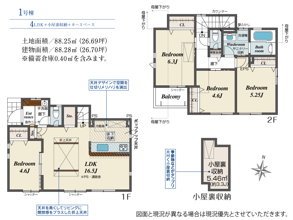 土地面積 88.25m² 建物面積 88.28m²