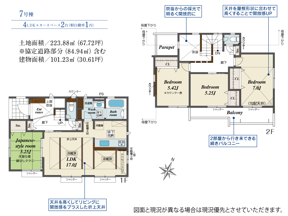 土地面積 223.88m² ・建物面積 101.23m² ・駐車場2台