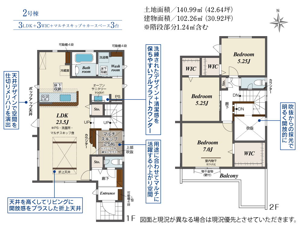 土地面積 140.99m² ・建物面積 102.26m² ・駐車場3台