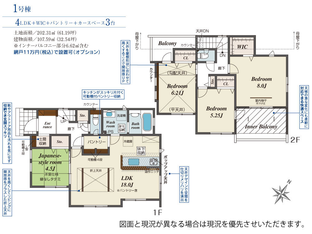 土地面積 202.31m² ・建物面積 107.59m² ・駐車場3台