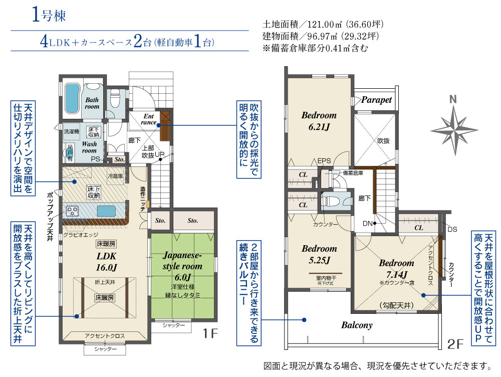 土地面積 121.00m² ・建物面積 96.97m² ・駐車場2台