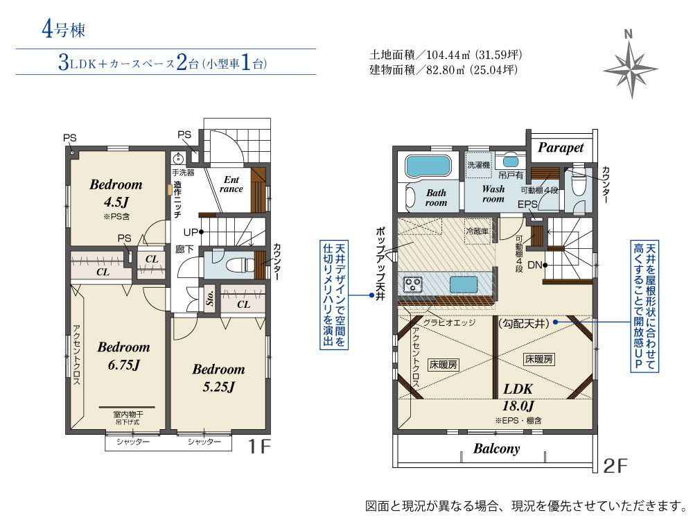 土地面積 104.44m² ・建物面積 82.80m² ・駐車場2台