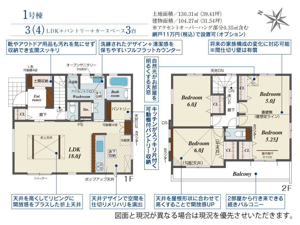 土地面積 130.31m² ・建物面積 104.27m² ・駐車場3台