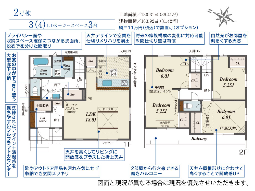 土地面積 130.31m² ・建物面積 103.92m² ・駐車場3台
