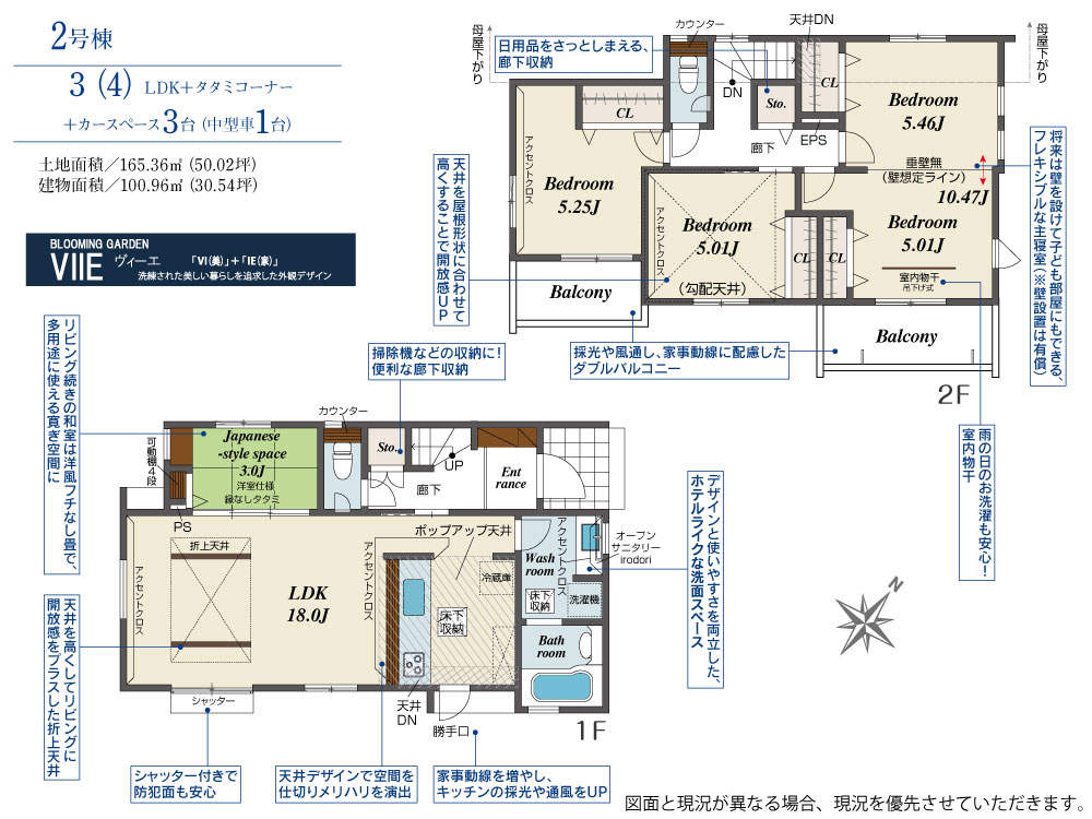 土地面積 165.36m² ・建物面積 100.96m² ・駐車場3台