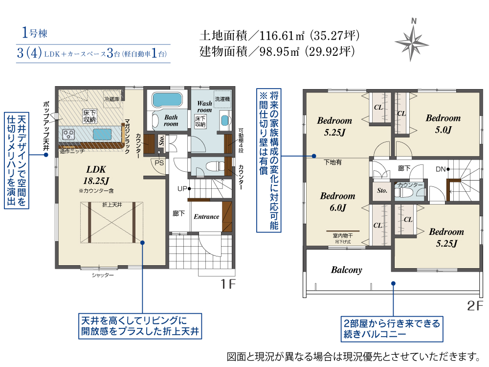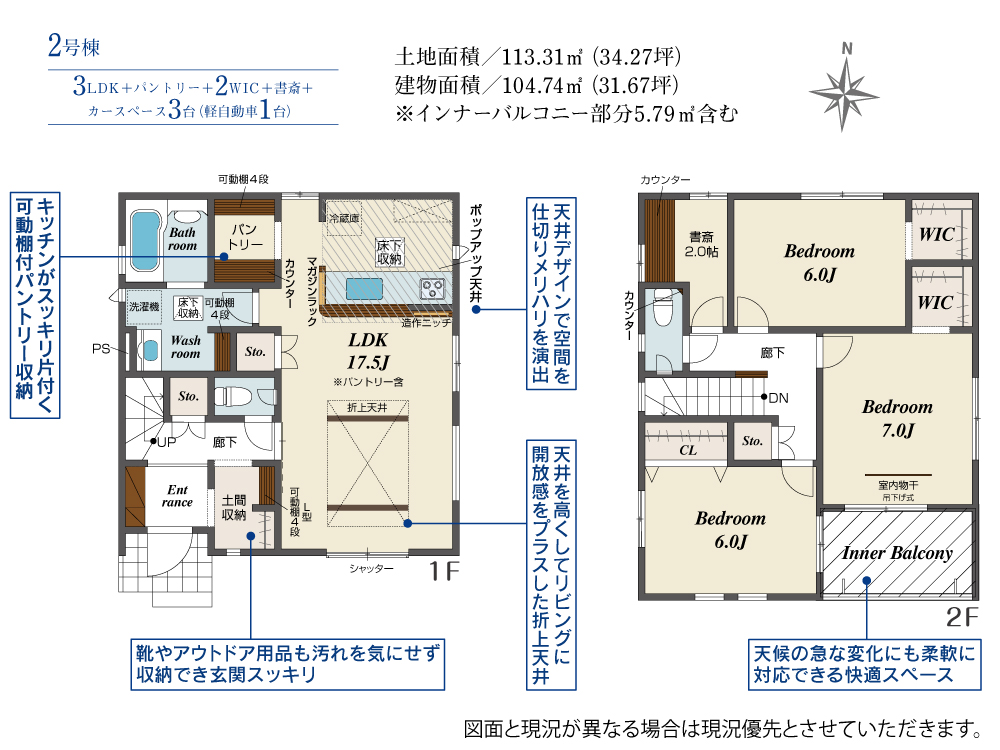 土地面積 113.31m²~116.61m² 建物面積 98.95m²~104.74m²