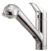 蛇口一体型浄水器浄水・原水の切り替えが ワンタッチ。ホース内蔵タイプです。
