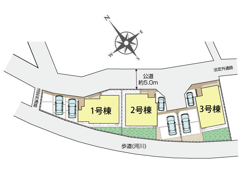 土地面積45坪以上で前面道路は5.0mとなっており、駐車もラクラク♪