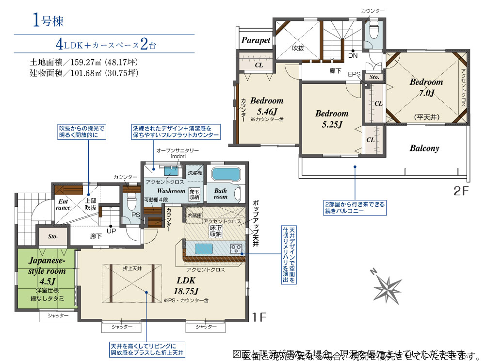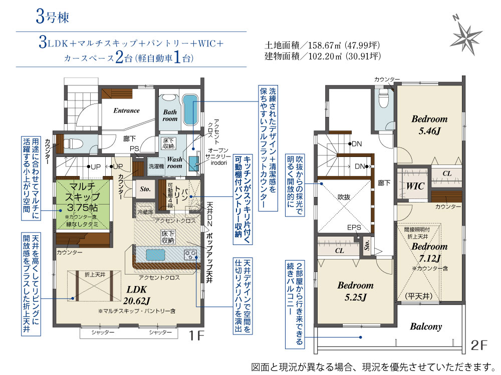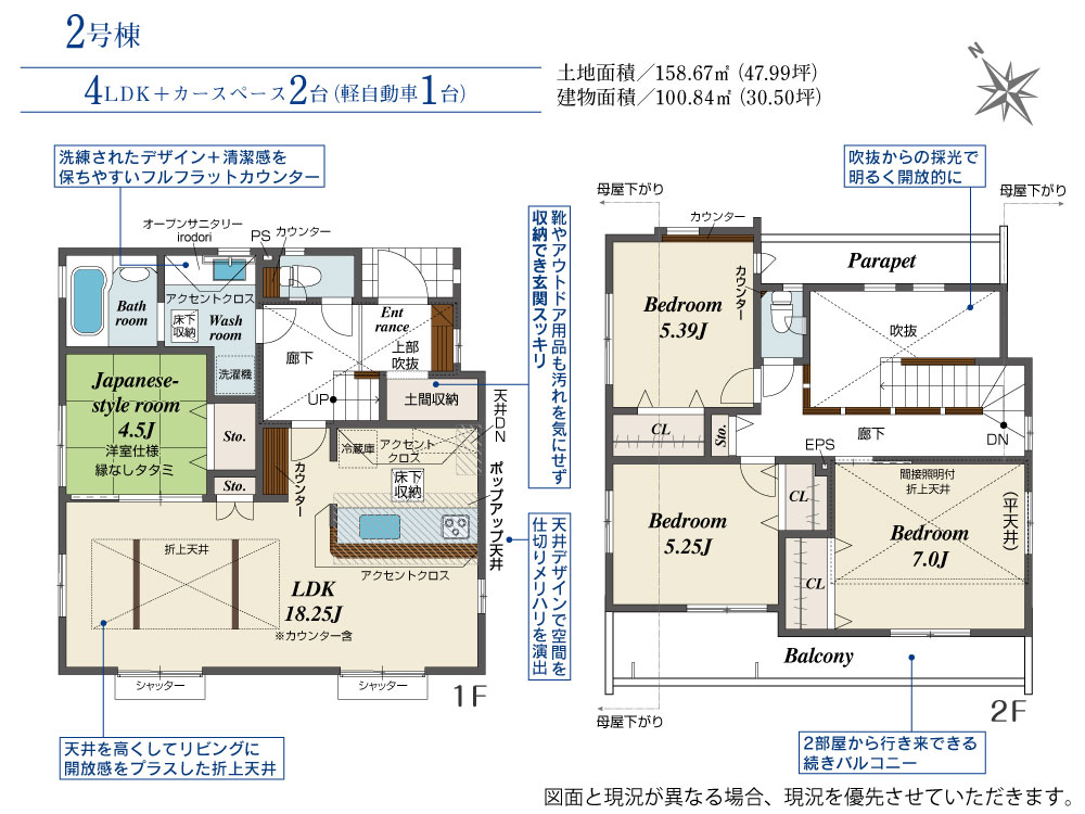 土地面積 158.67m²~159.27m² 建物面積 100.84m²~102.20m²