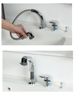 蛇口一体型浄水器蛇口の先端に浄水器を内蔵。場所をとらない画期的な浄水器です。また、浄水器ごとホースを引き出せます。 カートリッジ交換も簡単。