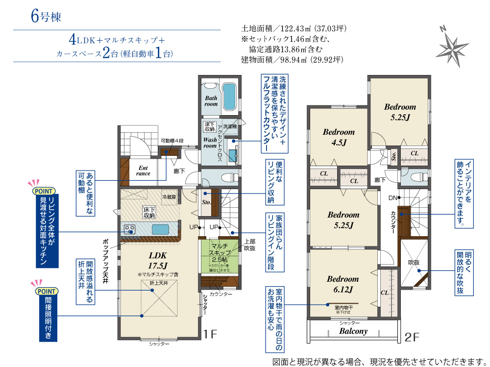 土地面積 122.43m² ・建物面積 98.94m² ・駐車場2台