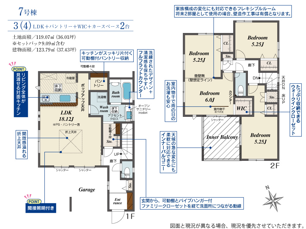 土地面積 119.07m² ・建物面積 123.79m² ・駐車場2台