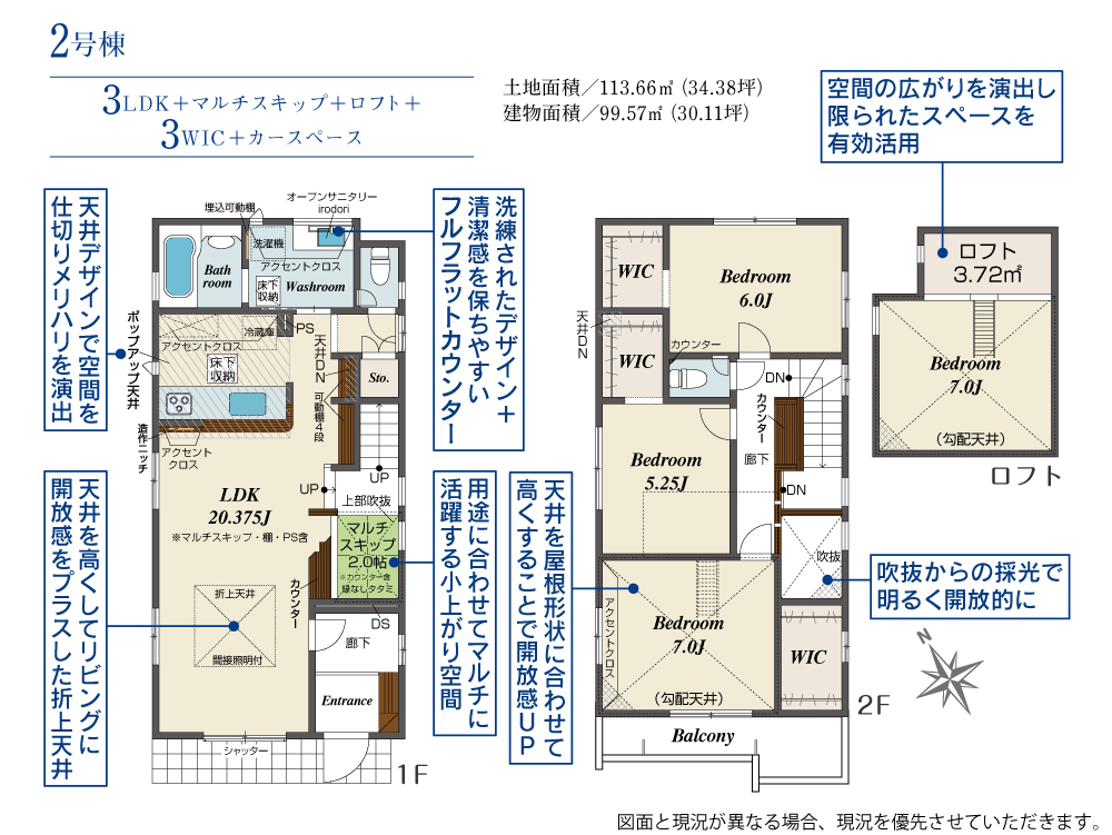 3LDK+マルチスキップ+ロフト+3WIC+カースペース