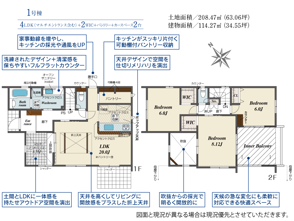 | 土地面積 | 208.47m²~208.48m² | 建物面積 | 108.26m²~114.27m² | |