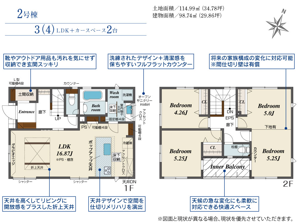土地面積106.18㎡~114.99㎡、4LDK