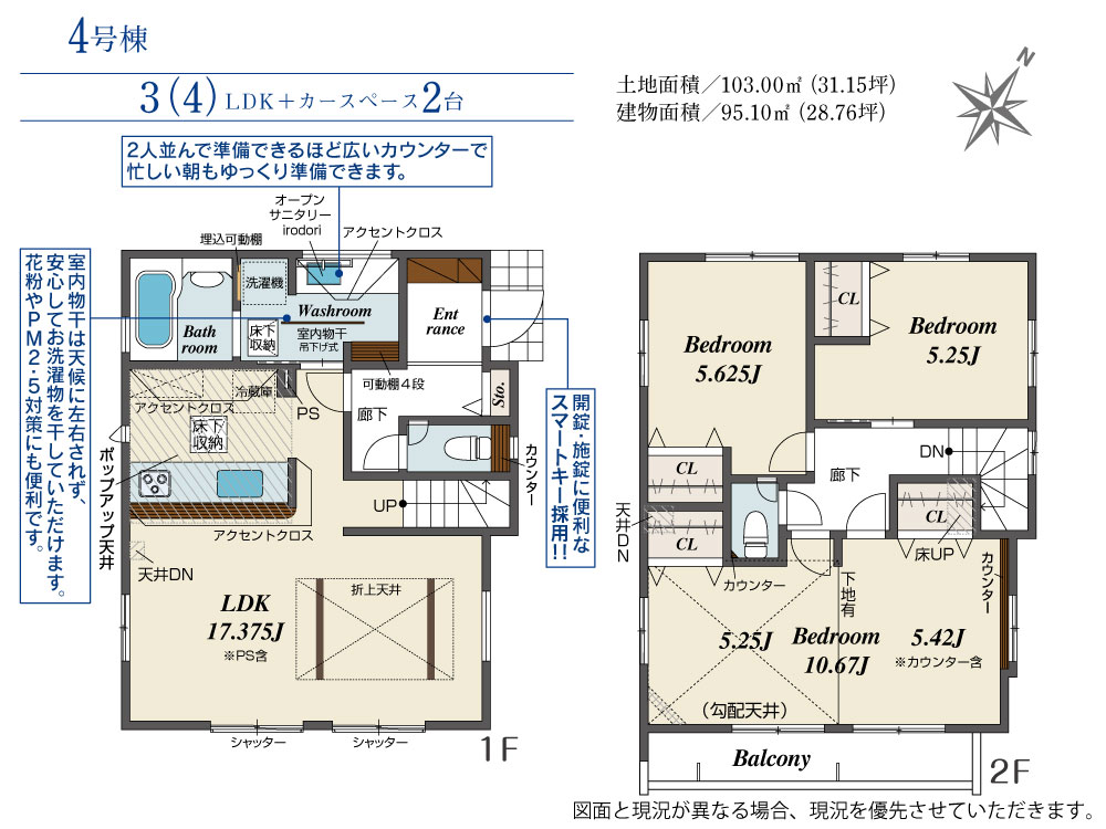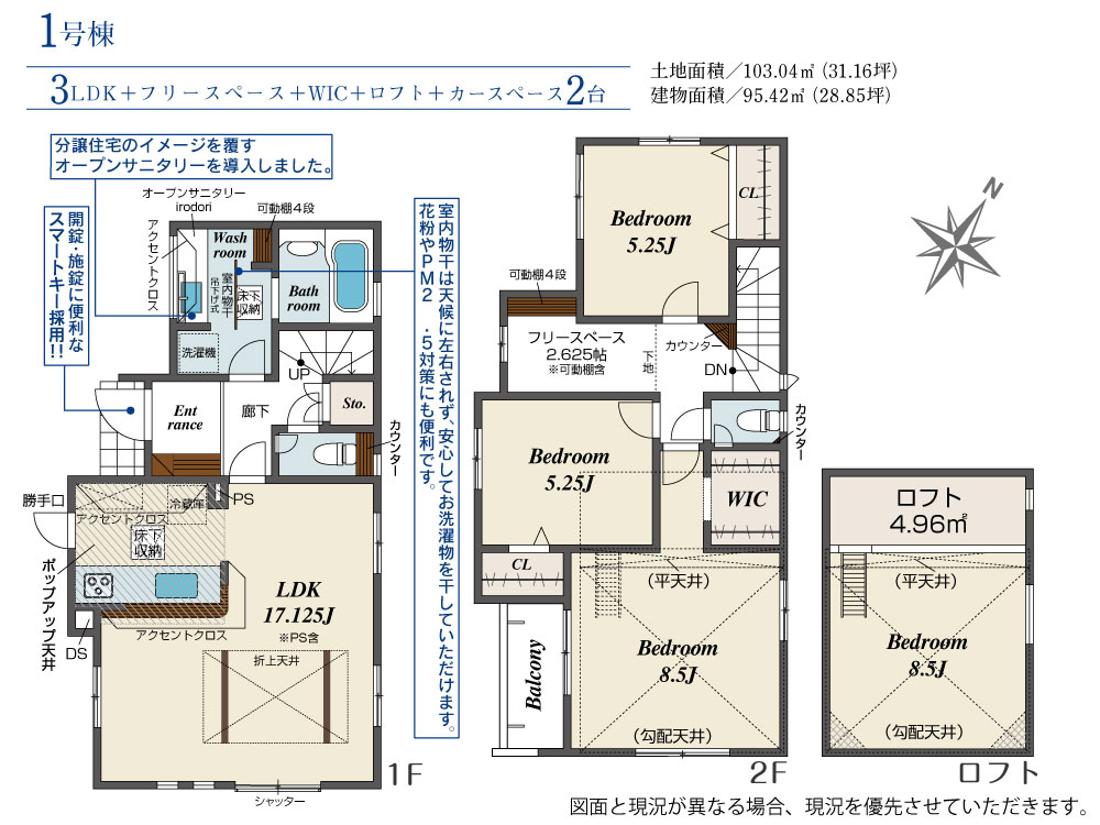 土地面積 103.04m² ・建物面積 95.42m² ・駐車場2台
