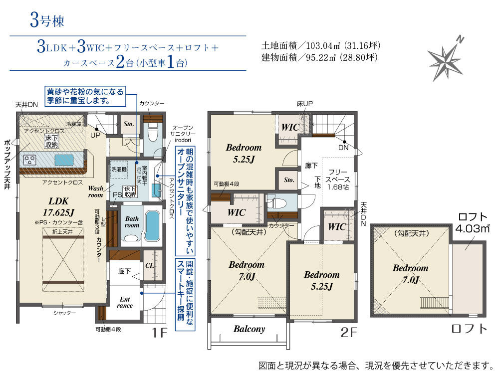 土地面積 103.04m² ・建物面積 95.22m² ・駐車場2台
