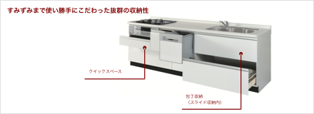 無理のない姿勢でラクラク収納&取り出し。 使いやすさを優先したスライド収納タイプ。
