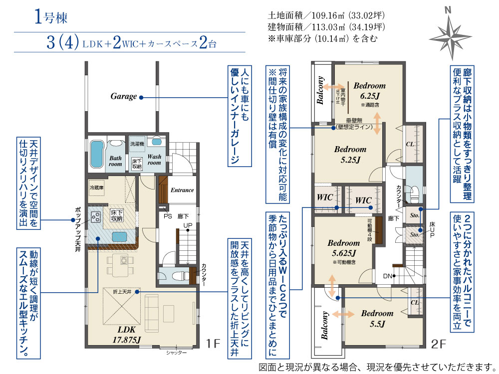 土地面積 109.16m² ・建物面積 103.03m² ・駐車場2台