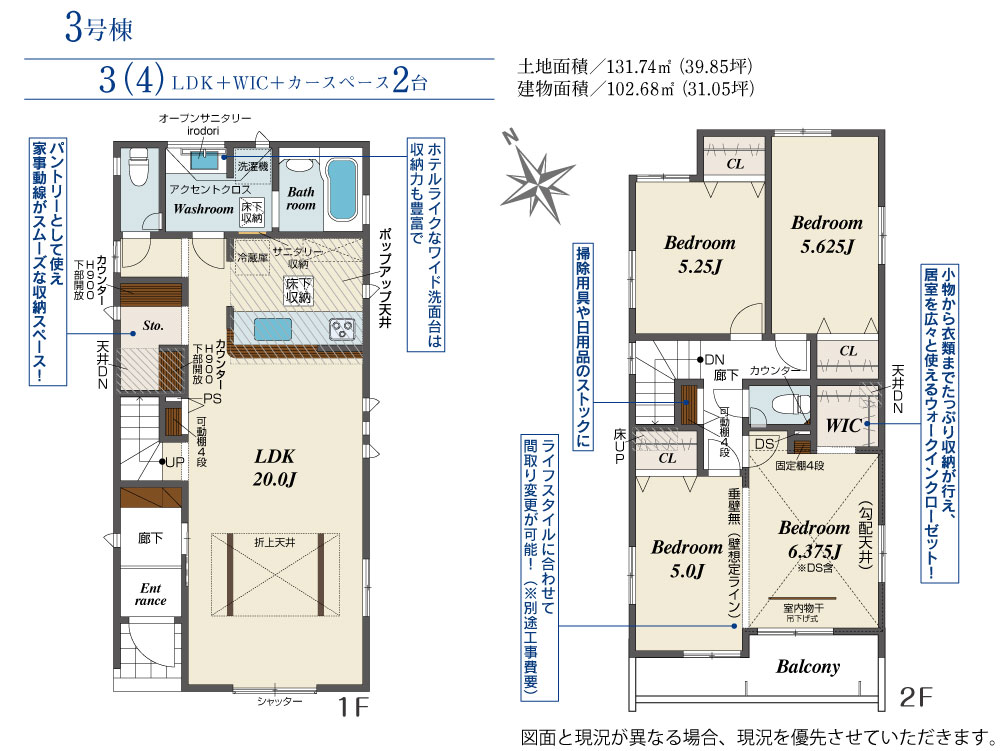 土地面積 131.74m² ・建物面積 102.68m² ・駐車場2台