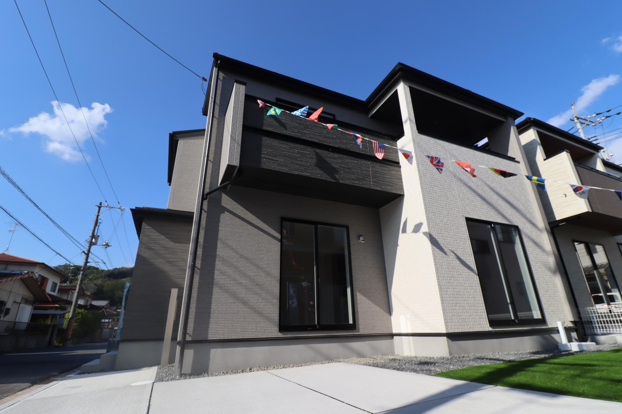 • 【外観完成予想図(左1号棟、右2号棟】