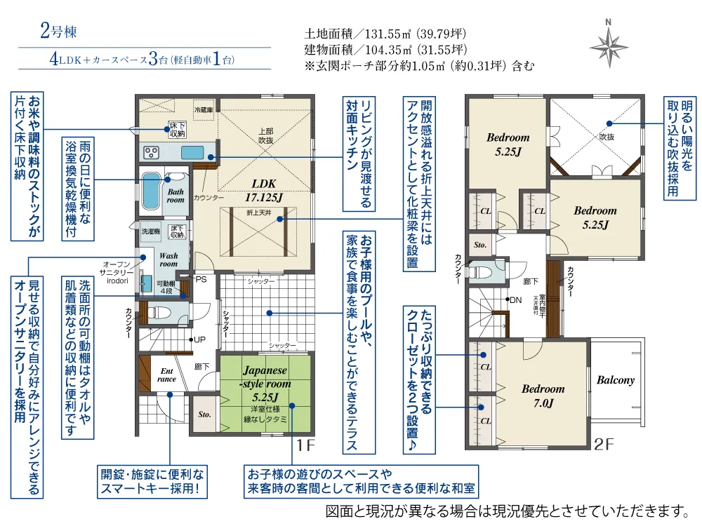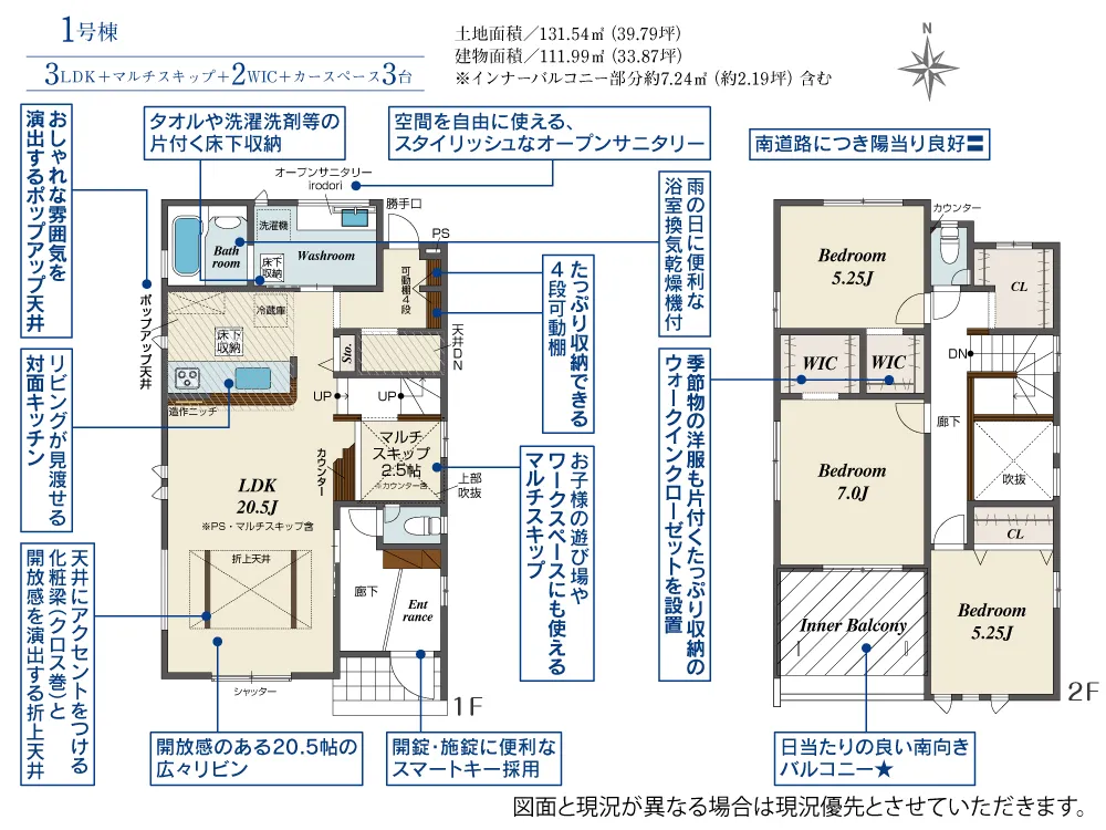| 土地面積 | 131.54~131.55m² | 建物面積 | 104.35~111.99㎡ |