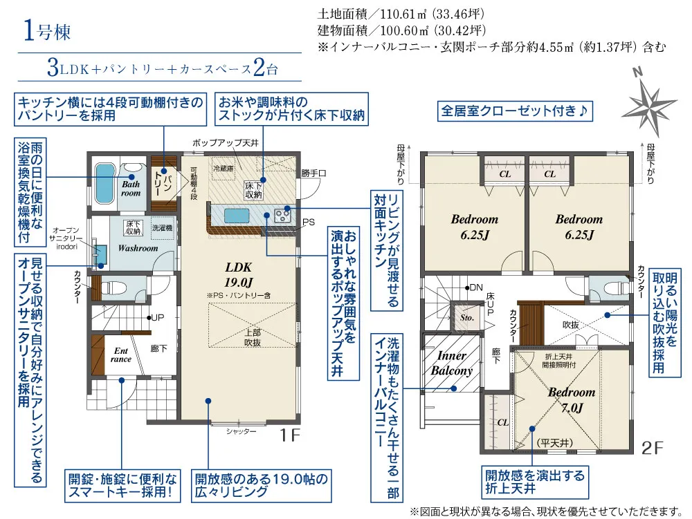1号棟:広々としたLDKと開放感あふれる吹抜を採用♪パントリー・クローゼット・可動棚4段採用の収納充実プラン☆彡