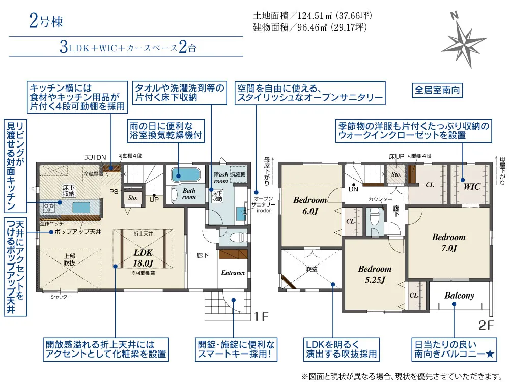 2号棟:すべてのお部屋にあたたかな陽光が差し込む全居室南向きプラン♪LDKには優しい光を取込む吹抜を採用!