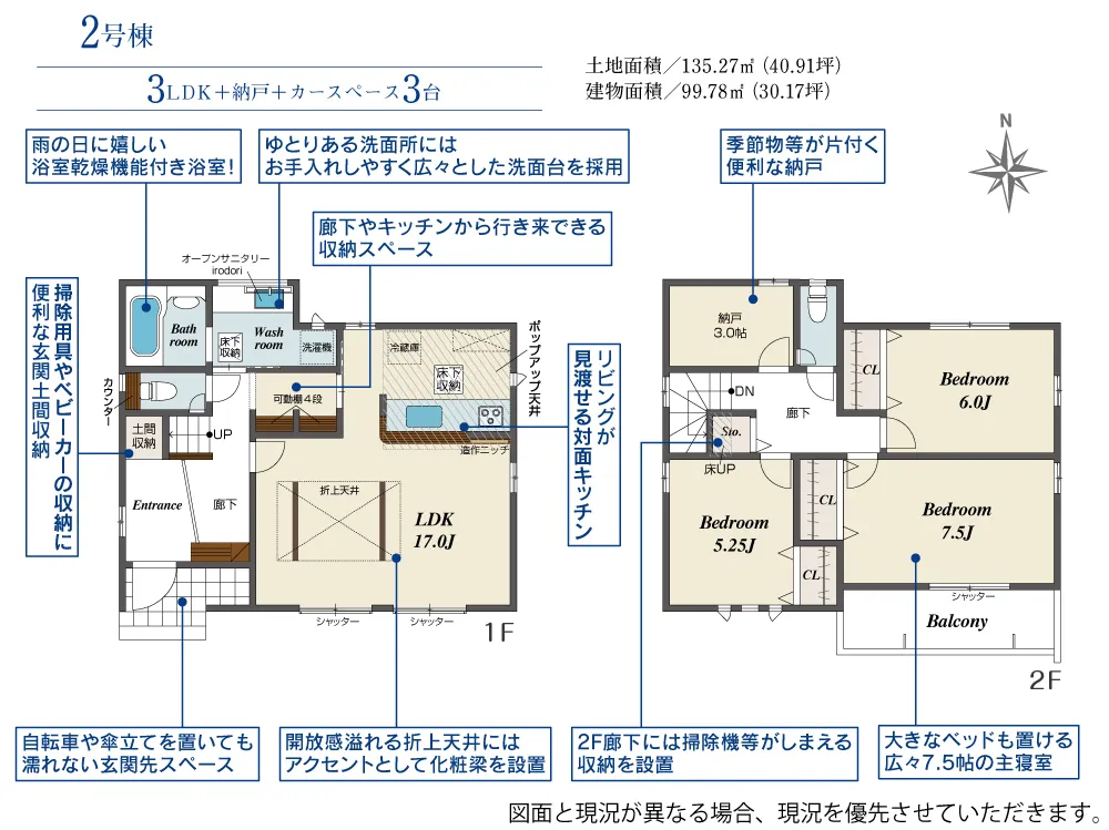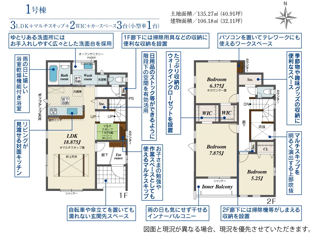 | 土地面積 | 135.27m² | 建物面積 | 99.78~106.18㎡ |