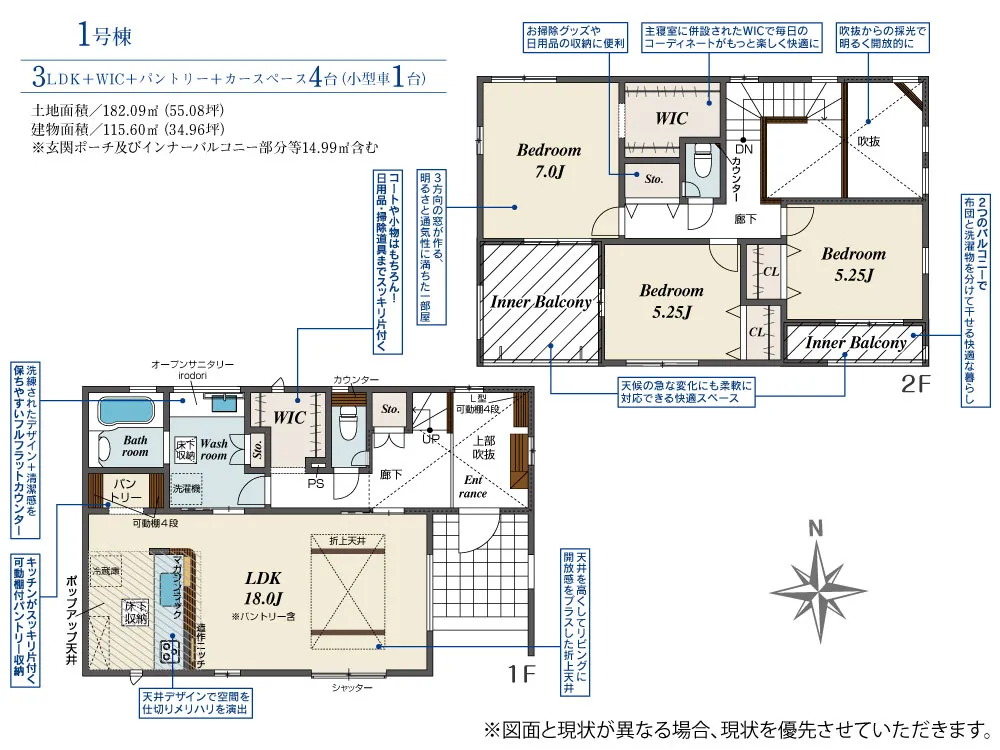 | 土地面積 | 182.09m² | 建物面積 | 115.60㎡ |