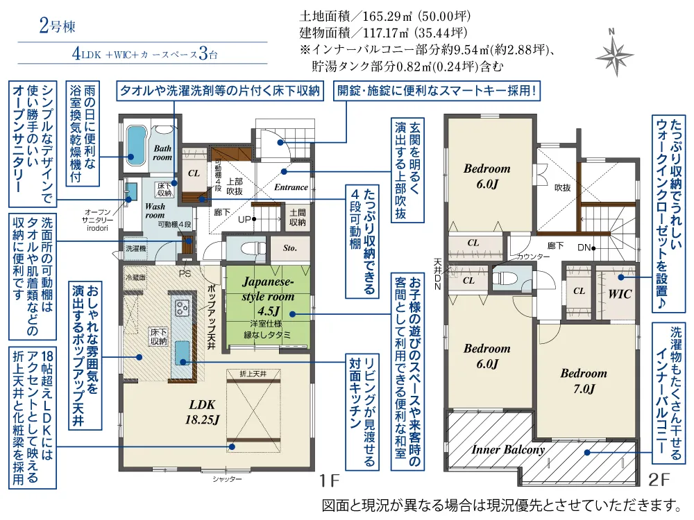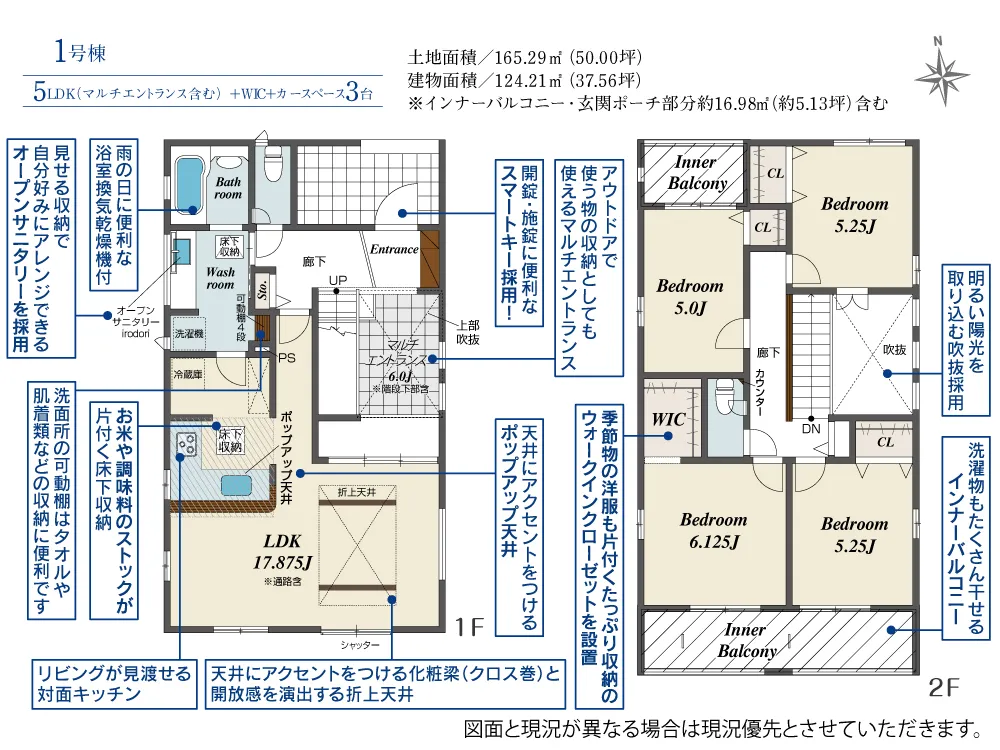| 土地面積 | 165.29m² | 建物面積 | 117.17~124.21㎡ |
