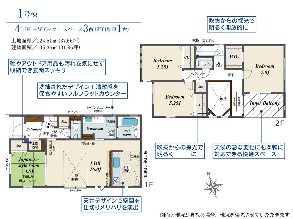1号棟:空間が広く感じるLDK吹抜を採用♪和室で落ち着いて過ごせます♪