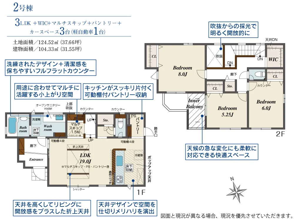 2号棟:マルチスキップ採用♪主寝室は広々の8帖空間♪