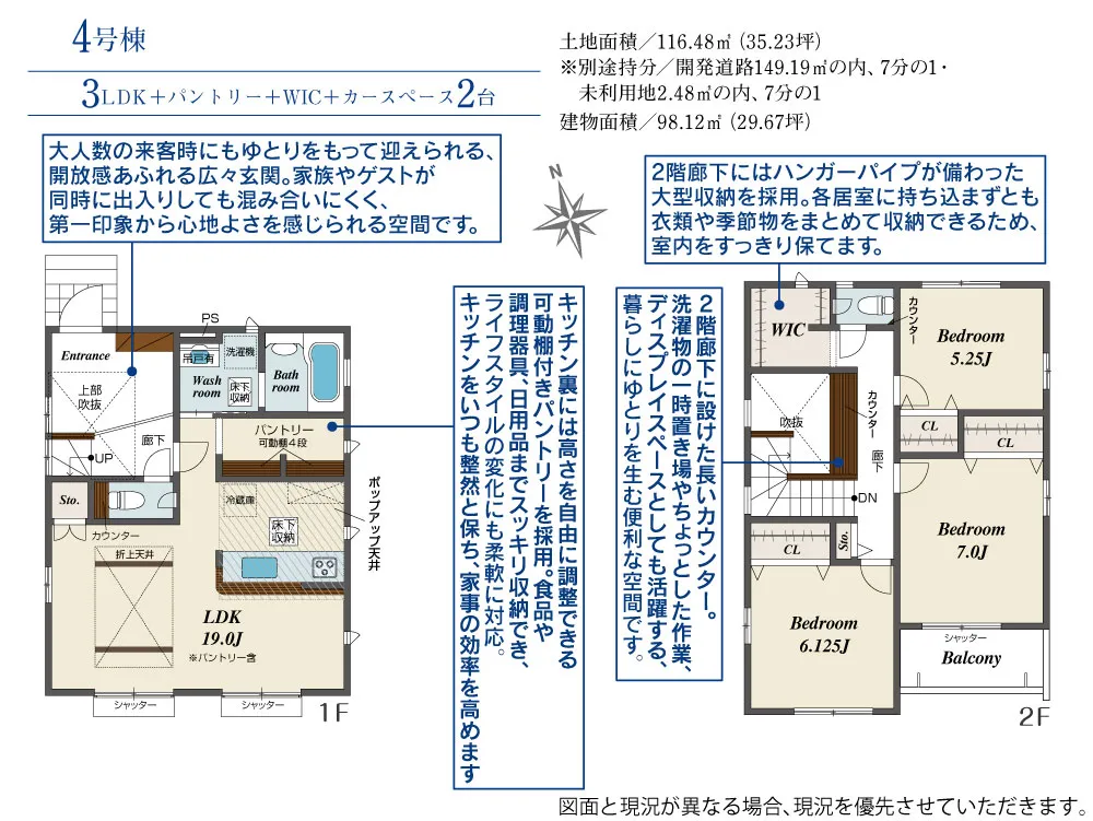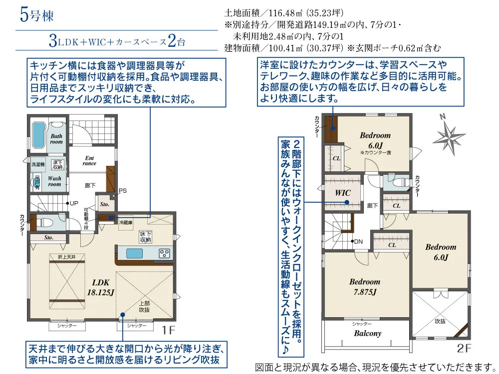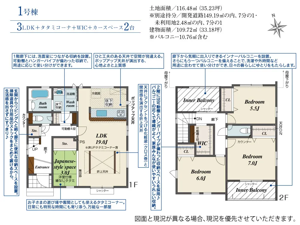 | 土地面積 | 116.48m² | 建物面積 | 98.12~109.72㎡ |