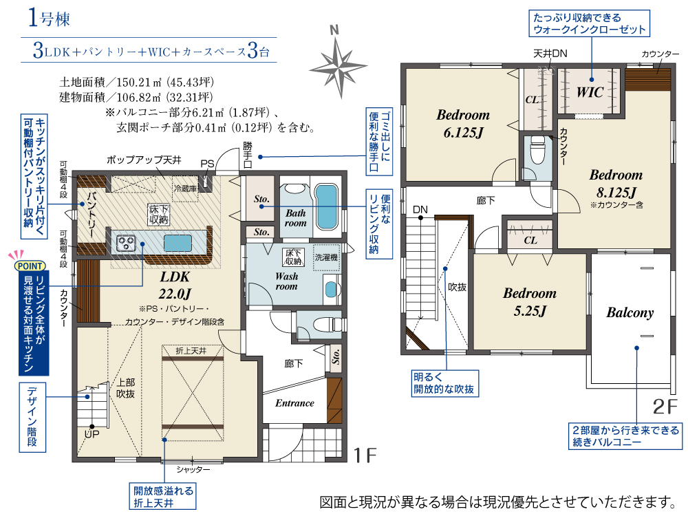 | 土地面積 | 150.21m² | 建物面積 | 106.82m² |