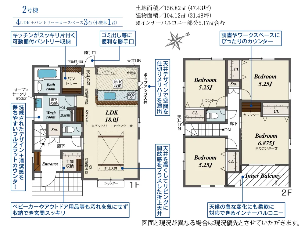 | 土地面積 | 156.82m² | 建物面積 | 104.12㎡ |