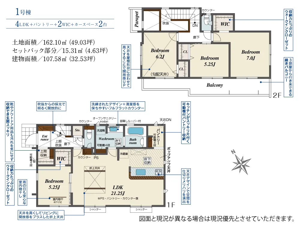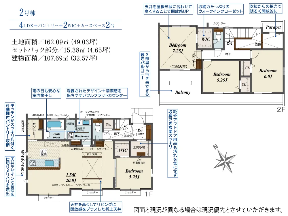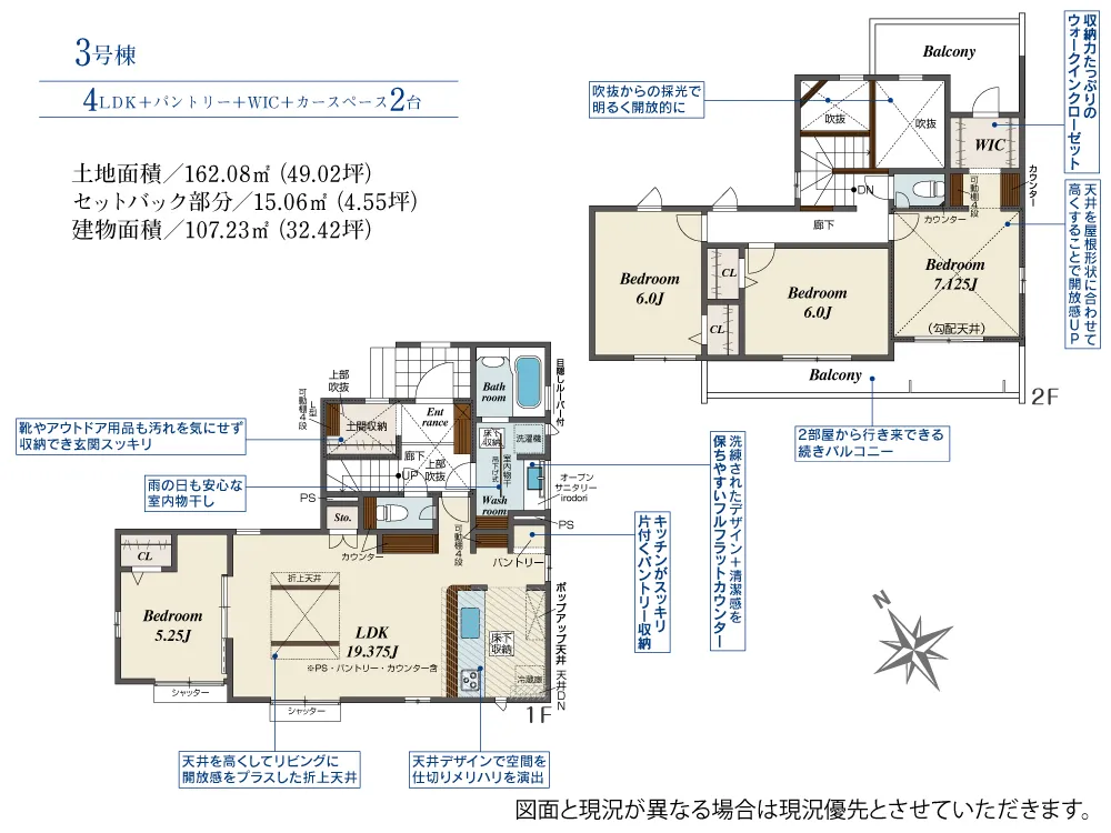 | 土地面積 | 162.08~162.10m² | 建物面積 | 107.23~107.69㎡ |