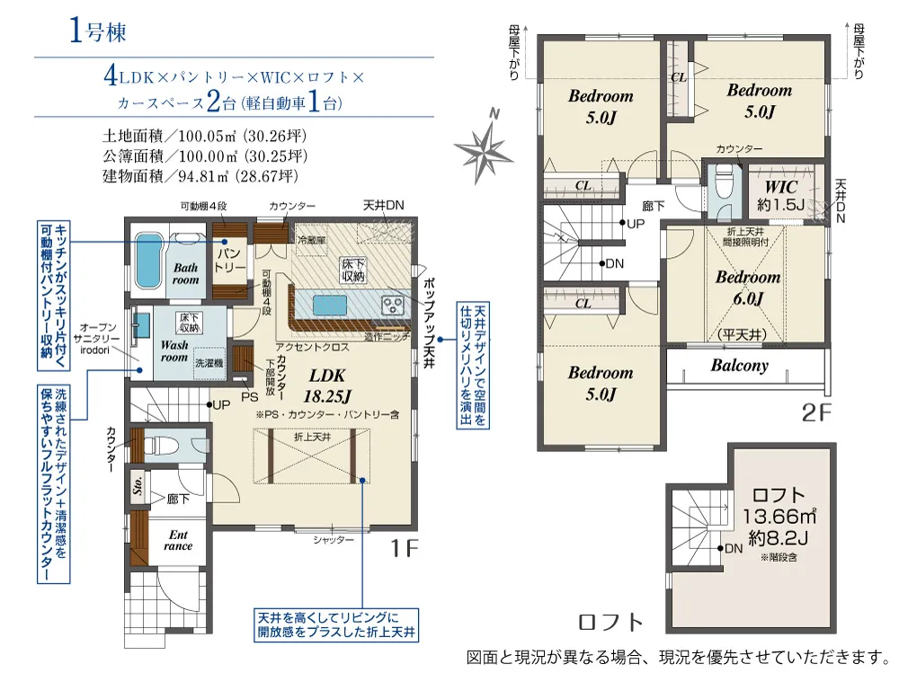 ●リビングガス栓設置・パントリー・WIC・寝室に折上天井&間接照明付・ロフト・宅配BOX等充実の設備!