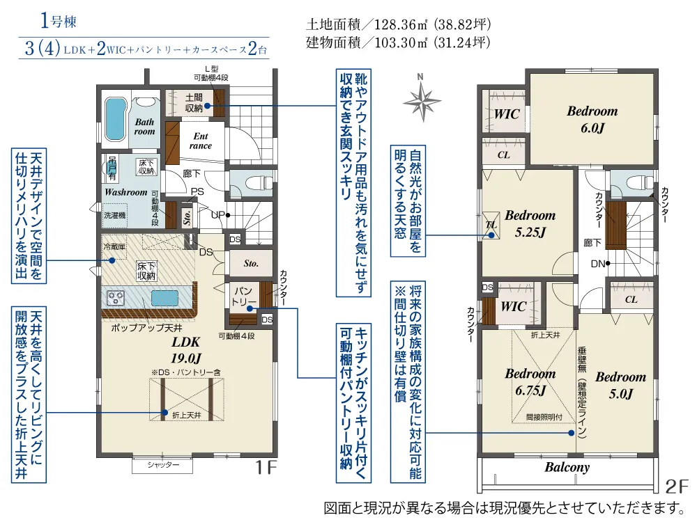 | 土地面積 | 128.33~128.36m² | 建物面積 | 103.30~104.06㎡ |