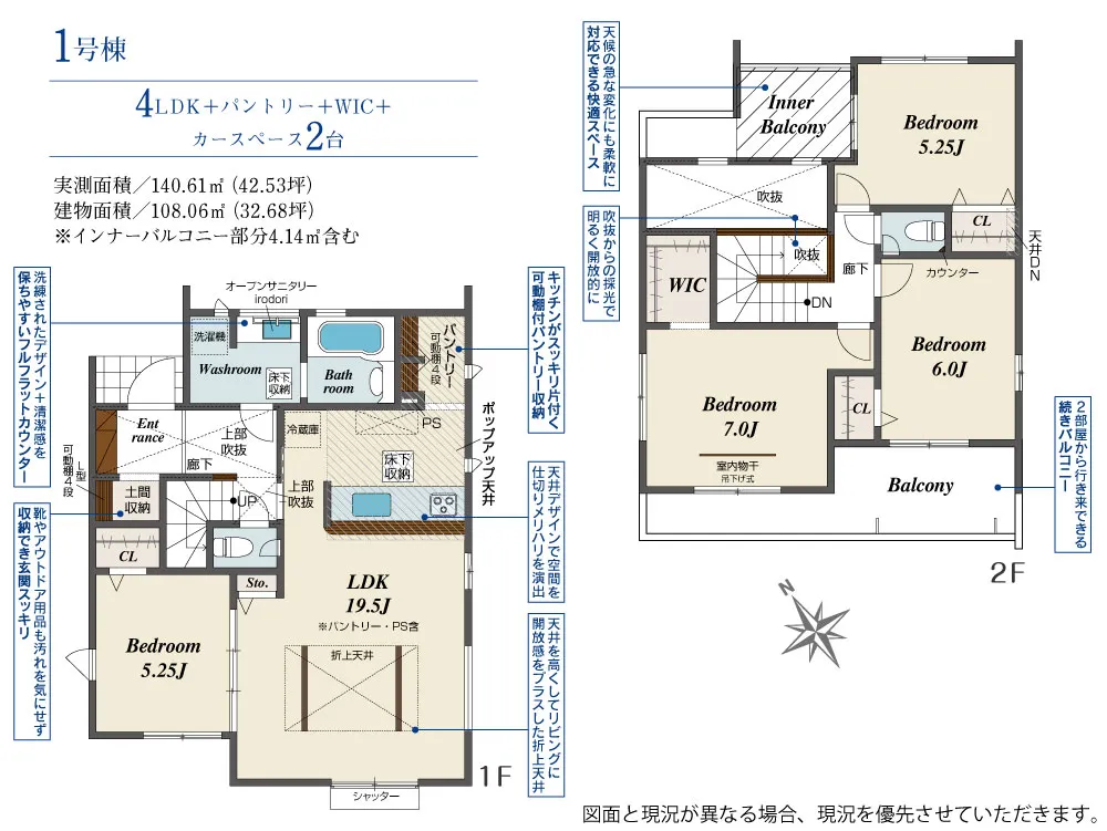 - 建物面積にインナーバルコニー部分4.14m2含む
