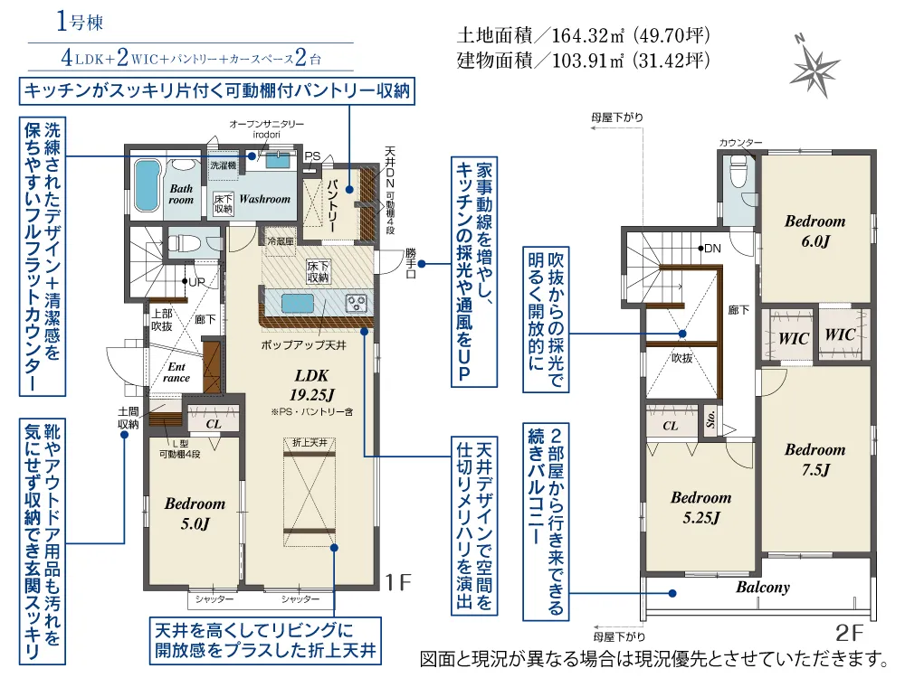 | 土地面積 | 164.30~164.32m² | 建物面積 | 103.91~105.16㎡ |