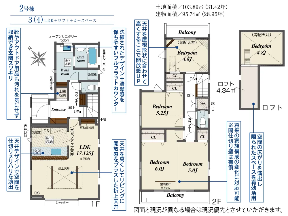 | 土地面積 | 103.88~103.89m² | 建物面積 | 95.43~95.74㎡ |